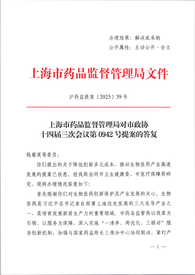 沪药监提案〔2025〕39号