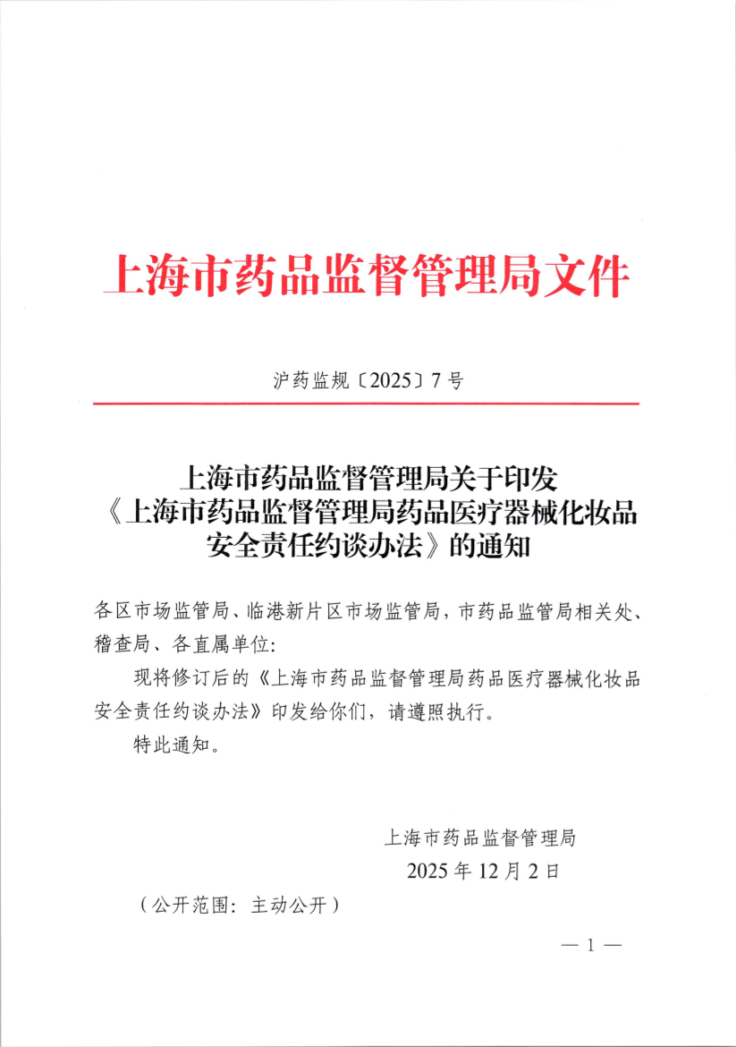 (有效期至2030年12月1日)AG真人关于印发《AG真人药品医疗器械化妆品安全责任约谈办法》的通知