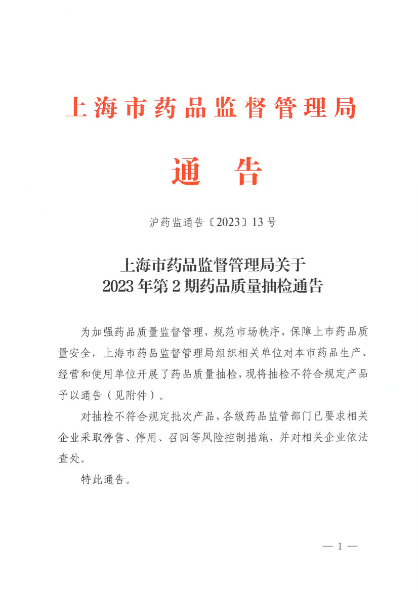 沪药监通告〔2023〕13号