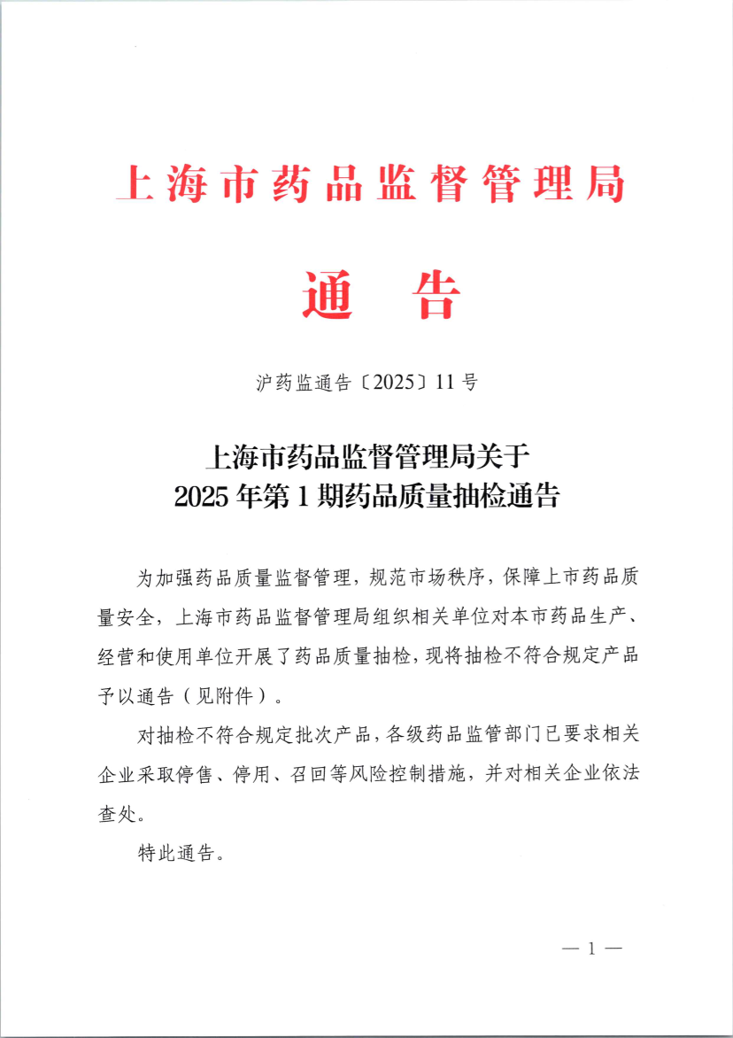 沪药监通告〔2025〕11号